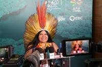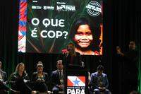 O ato ocorre na manhã dessa segunda-feira (10), em frente à Aldeia COP, preparada para receber povos indígenas durante a 30ª Conferência das Partes (COP 30)