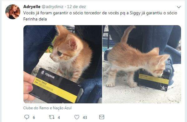Torcedora do Remo faz sócio-torcedor para seu animal de estimação Adryelle Diniz postou em sua rede social a carteirinha da gatinha Siggy, nova sócia-torcedora do Leão Azul Fábio Will 14.12.18 11h47 Iniciativa da torcedora fez sucesso nas redes sociais. (Reprodução - Twitter @adrydiniz) A torcida paraense sempre é um show nas arquibancadas e também fora dela, sempre ajudando o seu time do coração, adquirindo produtos e também se associando ao clube. E foi dessa maneira que uma torcedora do Remo decidiu ajudar o Leão, mas de uma forma inusitada. Leia mais: - Cria da base do Remo rescinde contrato e acerta com time mineiro - Atacante ex-Remo se despede e diz que vai ficar na torcida pelo clube - Em curso na CBF, técnico do Remo encontra com Tite - Ex-treinador do Remo critica modelo de gestão do clube "A vaidade dos amadores" - Times paraenses conhecem seus adversários na Copa do Brasil 2019 - Reunião definiu que Remo e Paysandu jogarão no grupo B da Série C A torcedora do Remo Adryelle Diniz, postou no Twitter a foto do seu pet de estimação, com a carteirinha de sócio-torcedor do Remo. Adryelle associou a sua gata Siggy, no plano “Ferinha”, que é destinado à crianças. Na rede social, a torcedora postou. “Fiz o sócio Ferinha que é pra criança de 0 a 11 anos e ela é minha criança, então tinha que fazer o Ferinha”. Em conversa com o diretor do Sócio-torcedor do Nação Azul, Rodrigo Salim, foi lembrado que isso é uma estratégia já usada e que poderá ser retomada pelo clube azulino. "Já foi feito anteriormente essa ação para seus bichos de estimação. Pode fazer sem problema algum. Até o Fábio Bentes, atual presidente, fez de um cachorro dele. Não há limites para o amor do torcedor”, disse. Assine O Liberal e confira mais conteúdos e colunistas. 🗞 Entre no nosso grupo de notícias no WhatsApp e Telegram 📱 Palavras-chave remo sócio-torcedor futebol esportes jornal amazônia pet COMPARTILHE ESSA NOTÍCIA Esportes . Desculpe pela interrupção. Detectamos que você possui um bloqueador de anúncios ativo! Oferecemos notícia e informação de graça, mas produzir conteúdo de qualidade não é. Os anúncios são uma forma de garantir a receita do portal e o pagamento dos profissionais envolvidos. Por favor, desative ou remova o bloqueador de anúncios do seu navegador para continuar sua navegação sem interrupções. Obrigado! ÚLTIMAS EM ESPORTES Futebol Fora da lei, Mangueirão ainda não tem biometria 17.12.25 11h16 FUTEBOL Guto Ferreira explica a não renovação com o Remo e fala como foi o trabalho com Marcos Braz Peça importante no acesso azulino, técnico Guto Ferreira falou que não teve respaldo do Remo para fechar a renovação de contrato 17.12.25 10h39 FUTEBOL Paysandu anuncia a renovação de contrato do goleiro Gabriel Mesquita Goleiro Gabriel Mesquita foi titular em alguns jogos da Série B deste ano 16.12.25 13h34 Mais esportes Cruzeiro perde para o Osaka, do Japão, na abertura do Mundial de Clube de vôlei Partida ocorreu no ginásio Mangueirinho, em Belém. 16.12.25 12h05 MAIS LIDAS EM ESPORTES FUTEBOL Guto Ferreira explica a não renovação com o Remo e fala como foi o trabalho com Marcos Braz Peça importante no acesso azulino, técnico Guto Ferreira falou que não teve respaldo do Remo para fechar a renovação de contrato 17.12.25 10h39 JOGOS DE HOJE Futebol: veja quem joga hoje, quarta-feira (17/12), horários das partidas e onde assistir ao vivo Super Mundial, Copa do Brasil, Copa da Liga Inglesa e Copa del Rey movimentam o futebol nesta quarta-feira 17.12.25 7h00 Série A 2026 CBF divulga tabela do Brasileirão 2026; veja a sequência completa de jogos do Remo O Remo fará sua estreia na Série A fora de casa com o confronto previsto para 28 ou 29 de janeiro 16.12.25 0h30 FUTEBOL Ídolo do Vasco, Edmundo posta vídeo da torcida organizada do Remo em sua rede social Torcida do Leão Azul ganhou destaque na publicação do ex-atacante do Vasco, Palmeiras e Seleção Brasileira 15.12.25 11h29
