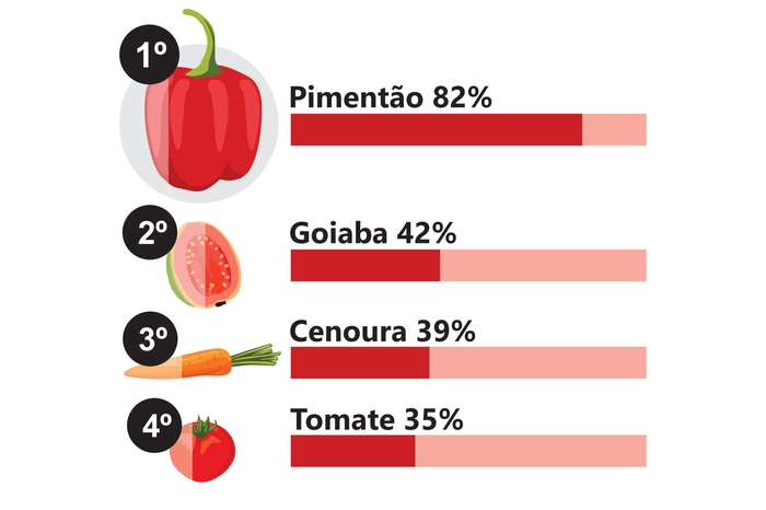 O pimentão é o vegetal que mais apresenta traços de agrotóxicos quando chega para ser comercializado nas feiras, de acordo com a análise dos dados da Agência Nacional de Vigilância Sanitária (Anvisa), publicados no relatório do Programa de Análise de Resíduos de Agrotóxicos em Alimentos, com resultados de testes feitos em frutas e legumes entre 2017 e 2018. De acordo com o estudo, oito em cada dez pimentões tinham resíduos de agrotóxicos proibidos ou acima do nível permitido, o que representa 82%. Em seguida, vem a goiaba, que apresentou 42% das amostras testadas com doses acima do recomendado ou agrotóxicos proibidos, a cenoura com 39% e o tomate, com 35%.