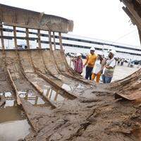 Última parte de embarcação antiga encontrada na Doca é resgatada na noite desta segunda-feira