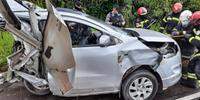 Homens do Corpo de Bombeiros, da Polícia Militar e policiais rodoviários federais estiveram no local para atender a ocorrência. Vídeos feitos após o acidente mostram que um dos carros se partiu ao meio.